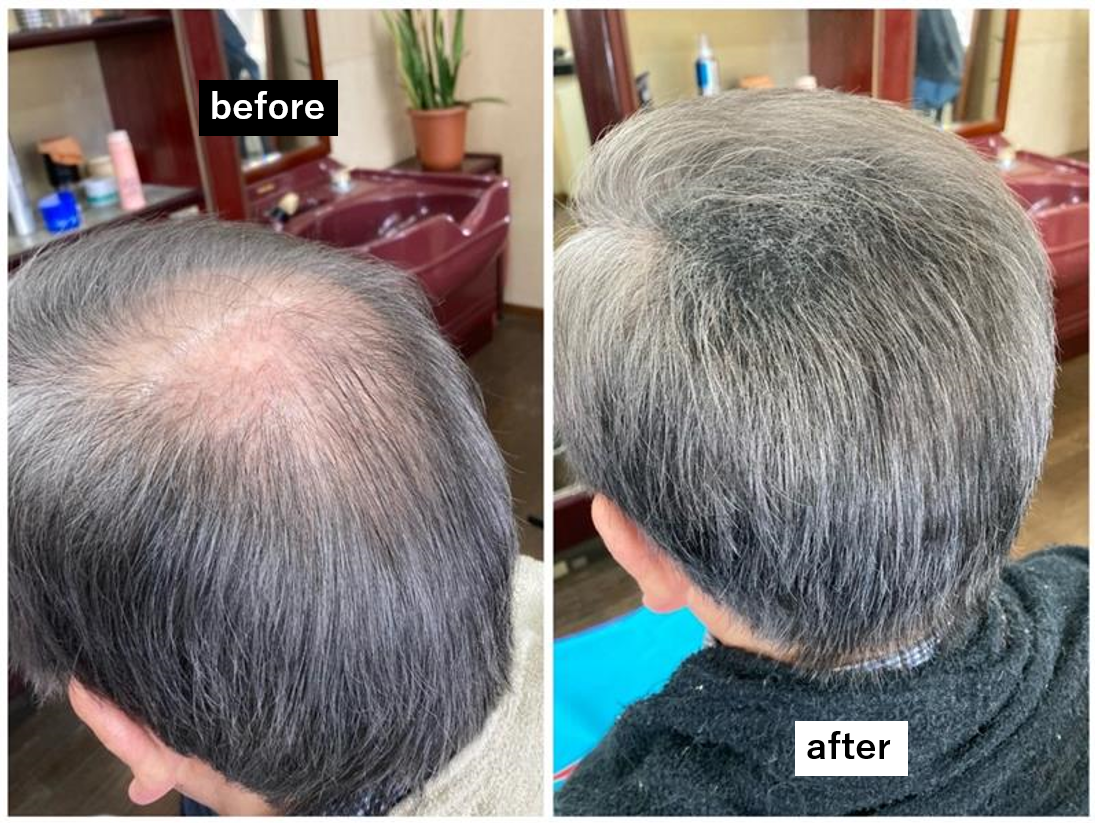 白髪に黒ではなく、グレー系の色を染めるのでコントラストがなくなり、自然な仕上がりとなります。